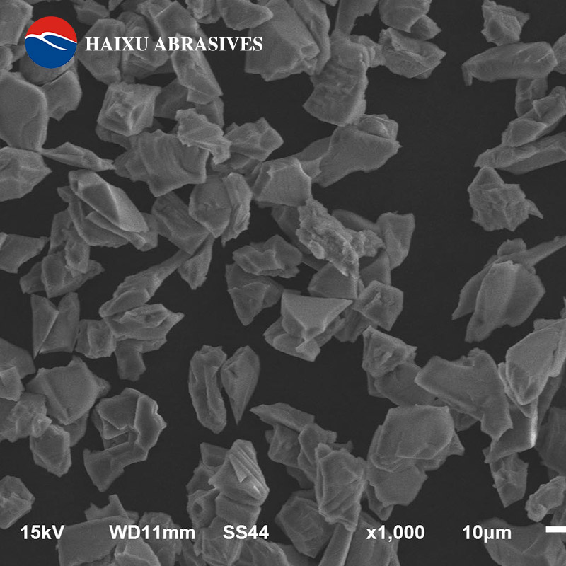 微粉以白剛玉800目為例,D3小于31微米,D50值14微米正負1微米,D94不低于9微米。海旭磨料生產(chǎn)的白剛玉經(jīng)過化學(xué)處理和水力溢流沉淀分級,顆粒的均勻度更高。