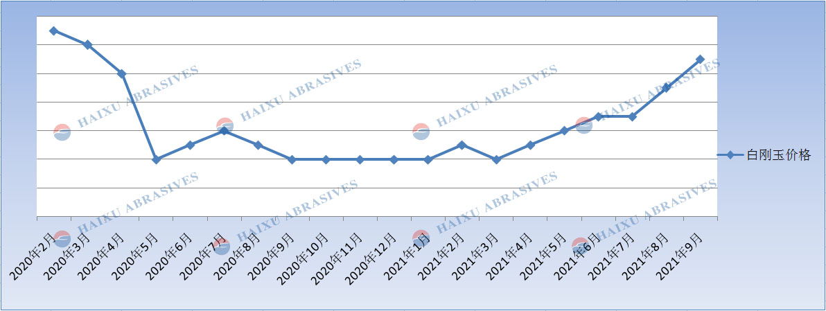 經(jīng)過2020年白剛玉價(jià)格的低迷階段,2021年4月份開始逐步攀升。